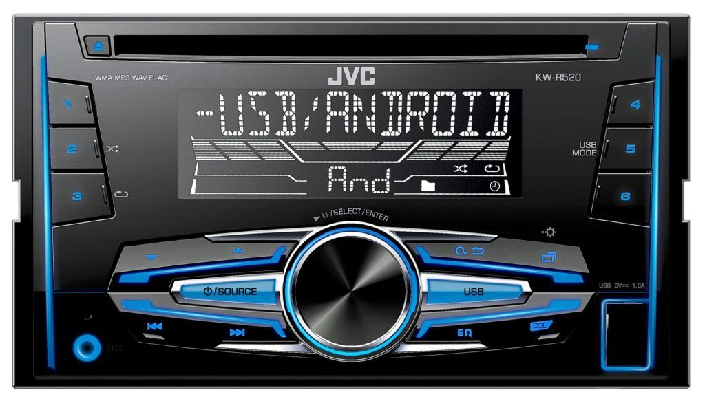 | 3 | JVC KW-R520 | Country of origin - China, average cost from 4390 rubles. | Supported formats: CD-Audio, MP3, WMA, FLAC 2 DIN size Maximum and working power 4x20 W / 4x50 W Number of Output Channels - 4 (PreAmp Front, PreAmp Rear, PreAmp Subwoofer) Dimensions: 178x112x158 mm | amplifier, equalizer, display - monochrome, color backlight |