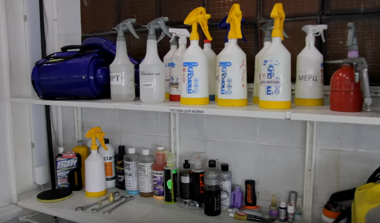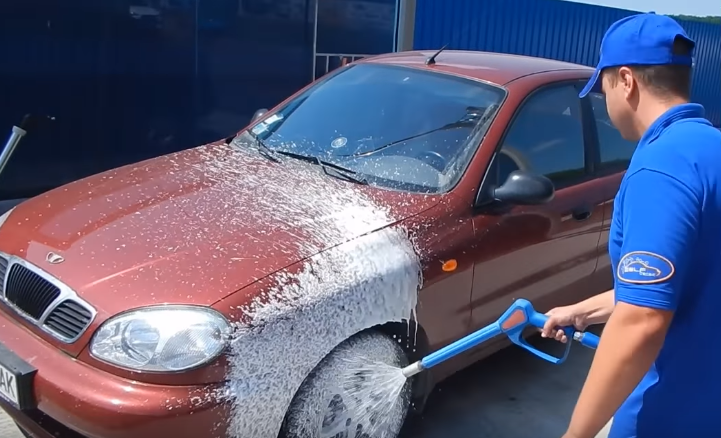 With her, shampoos are used with a high-pressure apparatus (AED) and a foam generator (spray bottle with a tank). With their help, a thick foam is formed that can cover the entire body. For better removal of dirt, it is left on the surface of the machine for 5 minutes, after which it is washed off with a stream of water from a hose. These shampoos are more aggressive, contain more surfactants and foam more.