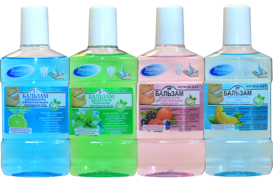 "Forest balsam" is the most common oral care product. You can buy it in pharmacies and hardware stores at an affordable price. Customers love the special dispenser on the top of the bottle. A small family can use one bottle for a whole month. If ingested, the substance is considered safe. The rinse aid has a pronounced taste, so it may not be suitable for small children for use. The balm has no more disadvantages. In the ratings, he occupies the leading positions.