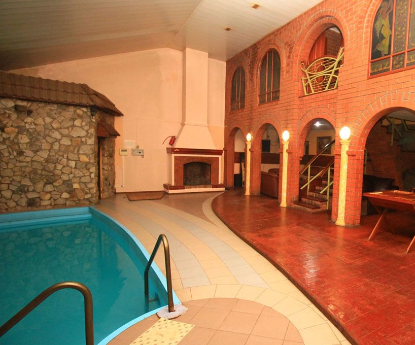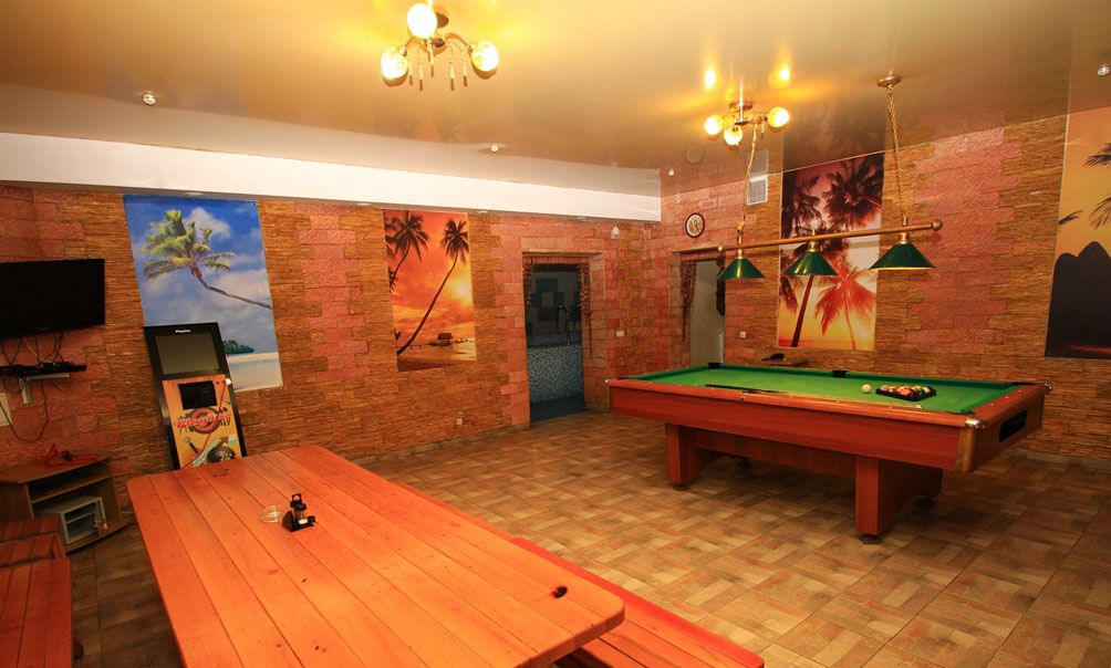 The bath complex also includes a mini-hotel with a living room and two bedrooms. The recreation room is equipped with a TV and a billiard table.