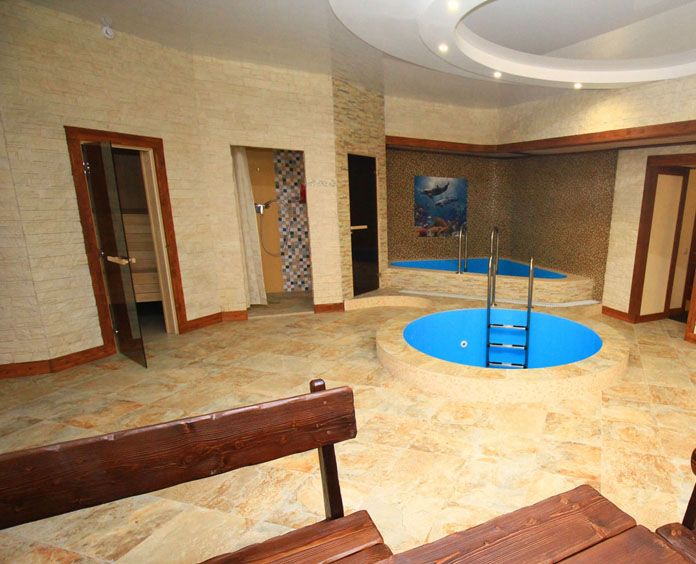 In order for guests to cool off after visiting the steam room, there is a large swimming pool with illumination, heating and constant filtration.