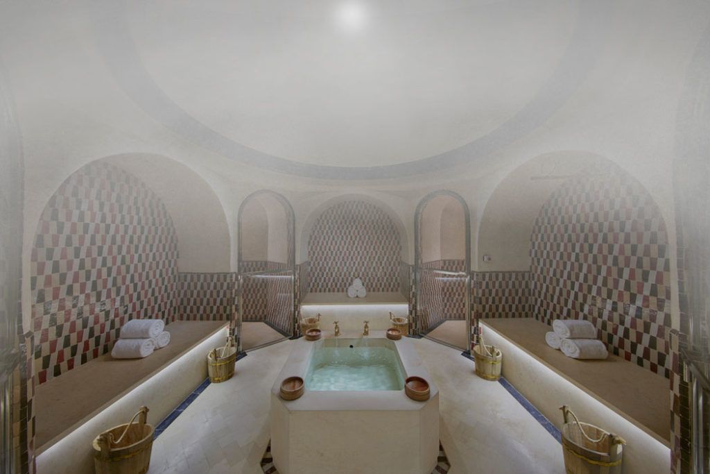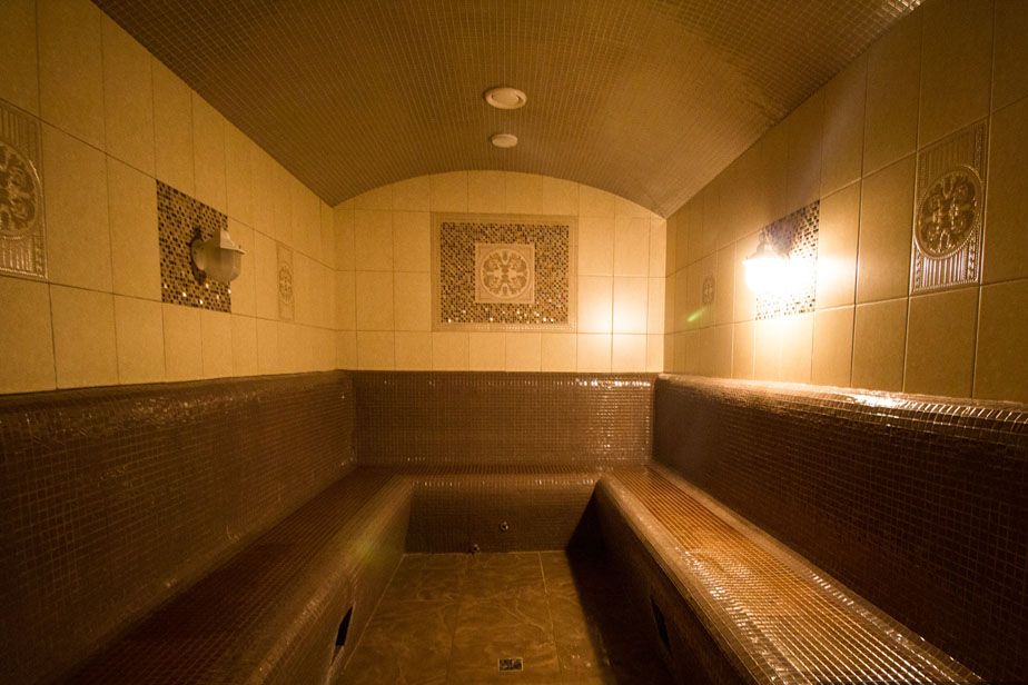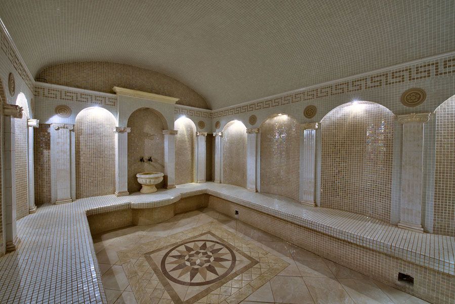 Like a Roman thermae, it consists of several rooms: a dressing room (jamekian), a shower room (pestemal), and a spacious steam room (hararet). As in the Roman baths, the walls and floors are tiled with tiles and stone, the benches in the bath are made of marble. The boiler heats the sauna on the stove, through the holes in which the steam enters the room. The air temperature in the hammam does not rise above 60 degrees. Another feature of the Turkish bath is the complex of body care procedures - specialists who provide massage and peeling services work here.