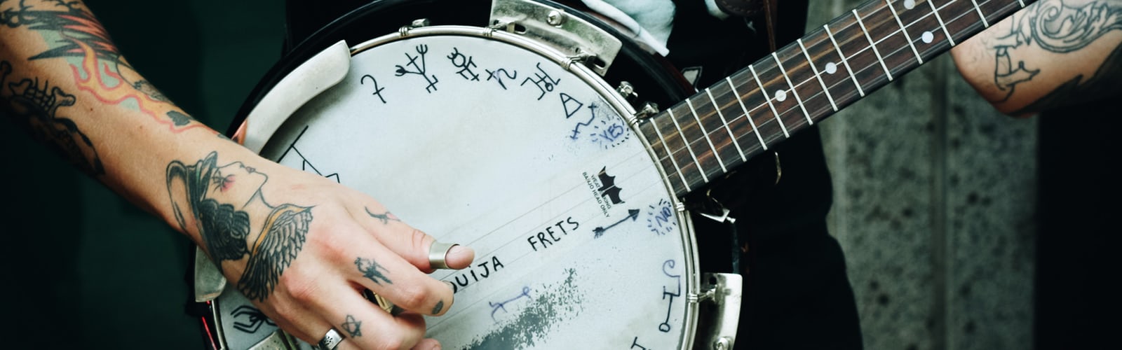 The western or country banjo (5 strings) is a folk instrument of American music. Used for playing with and without a plectrum (for various percussion techniques).