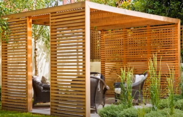Design. It is important that the gazebo is in harmony with the size and design of the site, the architecture of a country house, making up a colorful ensemble. The design of the classic style is based on the rigor and restraint of the composition. A minimum of decor and bright colors is encouraged. All this should not be the case if the gazebo is decorated in an oriental style. In this case, intricate lines, decorative elements and accessories, combinations of different materials (stone, wood, glass, textiles), original color combinations must be present. Country-style design is most often used, especially if the country house is made of timber or wood. A cozy gazebo can be decorated with a carved facade, fresh flowers, a tablecloth or curtains with embroidery, wicker furniture. Eco-style design is becoming fashionable. An artist-designer can sustain a project in one theme (bird's nest, elf's house, gnome's cave), respectively, complementing the design with separate decorative or functional elements.