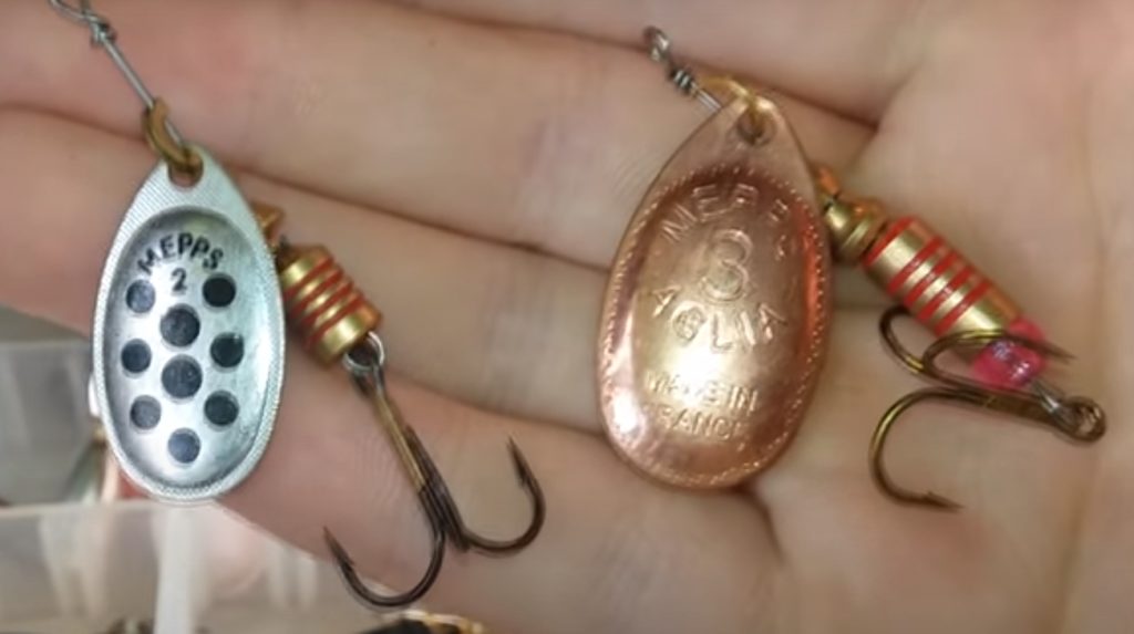 For river trout, “rear-loaded rotors” are used, their core is located on the wire axis, behind the petal. As a rule, the optimal size is №№000-1 (Mepps), weight 3-4 g. If the stream where the bait is used has a fast flow, it is better to use a product with a narrow petal, it does not create excessive resistance to the water flow during the drive, play keeps more natural without jerking.