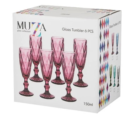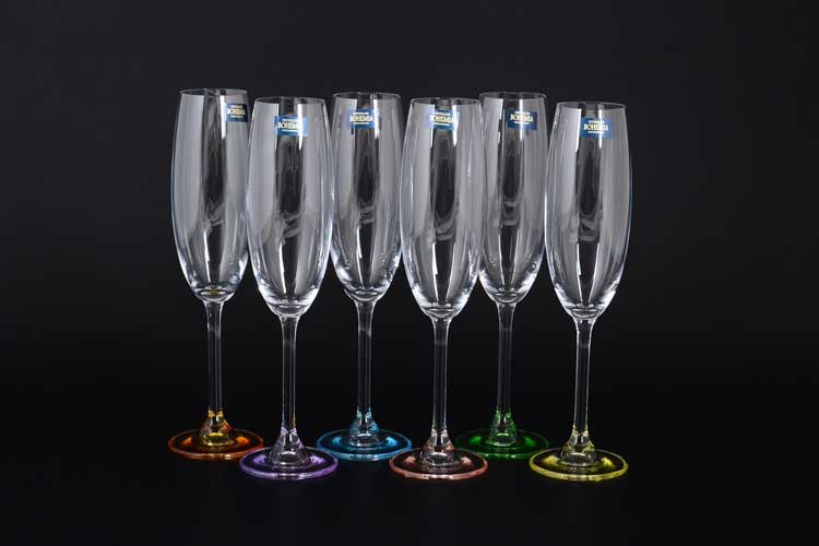 A set of champagne flutes with a capacity of 150 ml each in excellent packaging can be a wonderful gift. Material - colored glass. Quantity per set - 6 pcs.