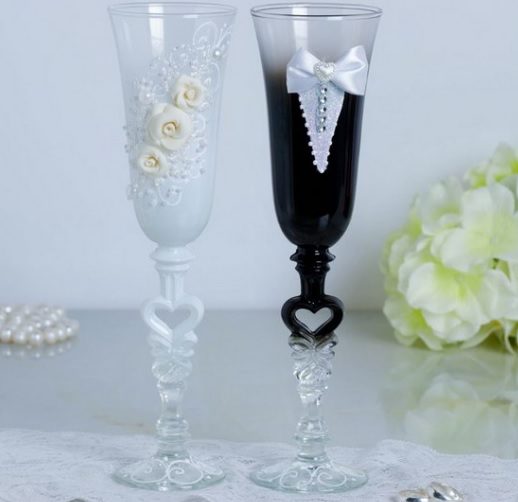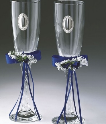 No wedding is complete without champagne. Beautiful wine glasses become a table decoration. After the end of the solemn events, they will help preserve the memory of the holiday for a long time. Beautiful champagne drinking utensils are considered a symbol of starting a new family. This tradition has been going on for a long time, it is evidence of the spiritual and physical connection of the couple. The glasses are tied with a ribbon as a sign of the creation of a new family and strong marriage bonds. Glasses for newlyweds are a must-have wedding accessory.