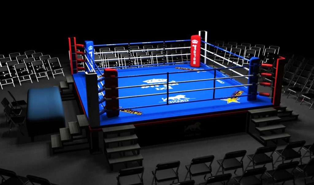 The site is specially designed for training in kickboxing, boxing and muay thai. The platform is 1 m high, which makes it possible to mount it for competitions in any premises. The design includes stairs and swivel seats, a combat zone of 6.1 m by 6.1 m. Installation takes place on a platform measuring 7.8 mx 7.8 m, made of high-strength metal covered with 20 mm plywood. The design is so compact that it fits easily into a Gazelle. Installation takes a little time. The flooring is of excellent quality and density, covered with PVC awning.