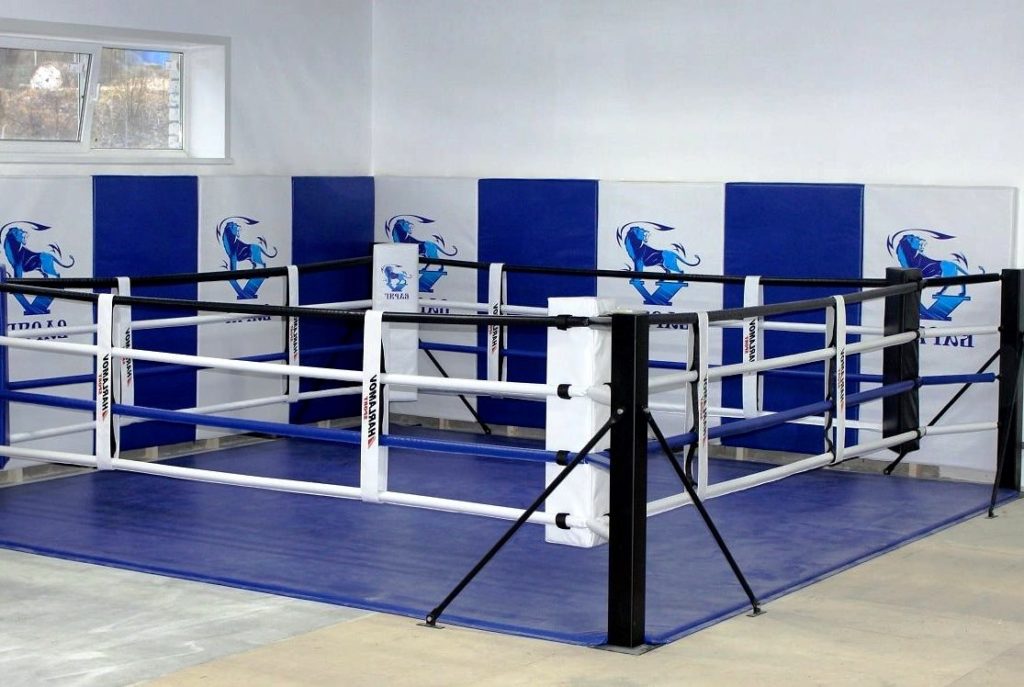 Eight-meter structure with a half-meter platform. It is widely used for training and sports competitions in boxing and mixed martial arts. Withstands high-intensity workouts, and therefore can often be seen on professional sites. The design is made taking into account all the rules and regulations. It is based on solid metal structures, the podium is covered with durable plywood, on top of which comfortable and safe PPEs are laid - mats with a density of 160 kg / m3, complemented by strong, durable and bright PVC covers. This product is complete with high quality double corner cushions.