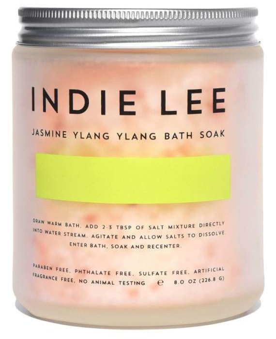 Indie Lee Jasmine Ylang Ylang Bath — It is a mineral-rich blend of salts from the Pacific and Atlantic Oceans, the pink Himalayan and the Dead Sea, which are ideally combined with soothing floral essential extracts. It also contains essential oils of jasmine and ylang ylang, which improve blood circulation and relieve body pain. This product is formulated to detoxify and make the skin soft and elastic.