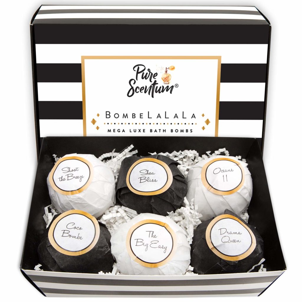 A luxurious organic Pure Scentum bath bomb transports the girl to the Paris spa. It contains a blend of essential oils that provide aromatherapy for the perfect relaxing session. The product is free of parabens, SLS and phthalates and is made from pure natural ingredients. Bath bombs include six fragrances with fancy names — Shoot the Breeze, Coco Bombe, Shea Bliss, The Big Easy, Oceans 11 and Drama Queen. Products with shea extract nourish and moisturize the skin.