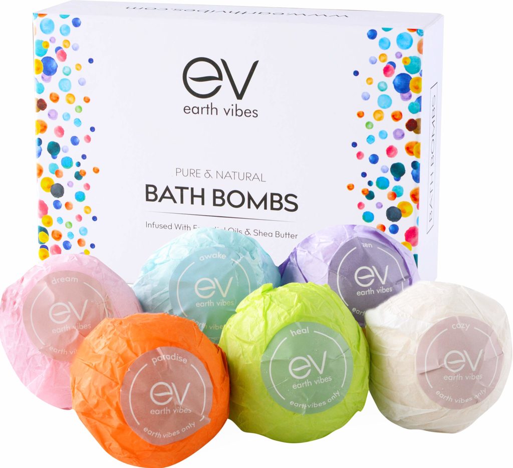 Earth Vibes bath bombs contain natural ingredients that promote natural healing of the epidermis. They are made from shea extract, vitamin A, sunflower oil, vitamin E and essential oils. Includes six large bath bombs with different scents — peppermint, lavender, aloe, rose, shea butter and mango. They are loaded with essential fatty acids such as omega-6s, which help eliminate skin infections and promote cell regeneration. This product also nourishes and moisturizes your skin.