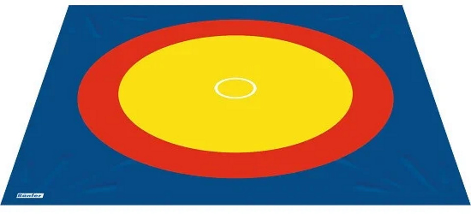 Official sports equipment for competitions made in Germany. Single-layer coating 10 x 10 meters, five centimeters thick. Suitable for all types of wrestling tournaments. Made of polyester reinforced tarpaulin. It is equipped with a folding edge and pockets in the corners along the perimeter.