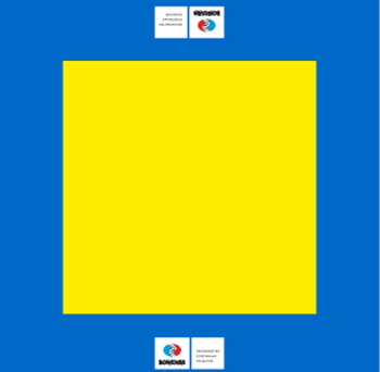 In addition, competition emblems, sponsor brands, or other markings are often applied to the carpet to avoid distraction, and to cover standard areas: