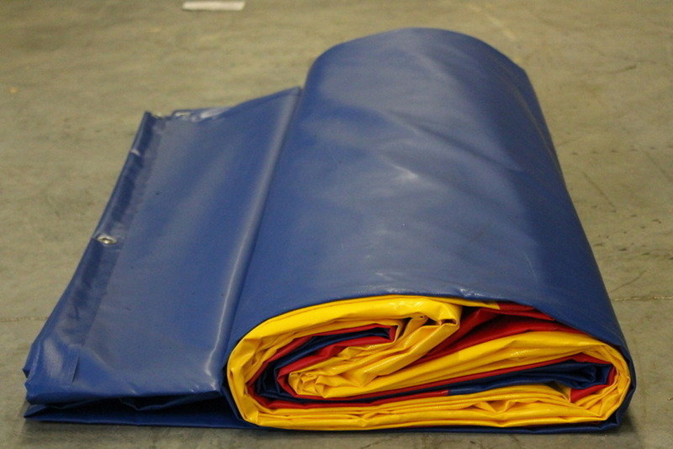 Russian-made three-color sports equipment to protect athletes from injury in gyms or clubs. A monolithic product with dimensions of six meters, a thickness of five cm with a continuous coating. Welding seams of a semi-gloss PVC blanket with a density up to 650 kg / m3 made on equipment from Switzerland. The required markings are applied to the coating.