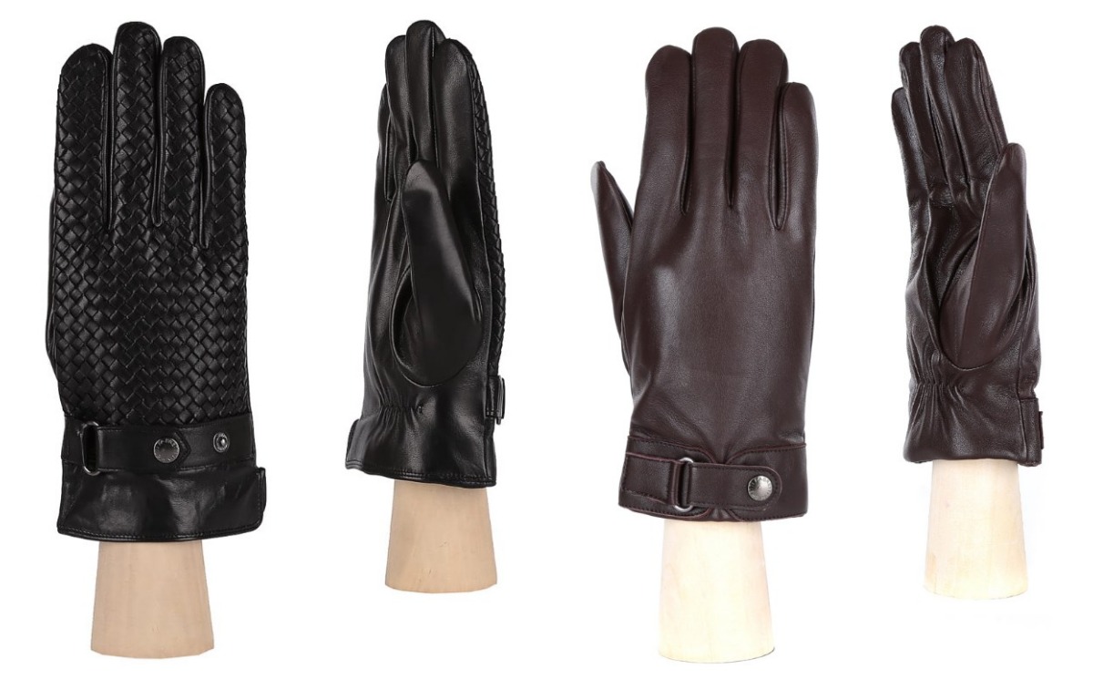The men's line is narrower and is presented with classic products in 4 colors: dark olive, chocolate, dark blue and black. They are sewn of lamb skin. The lining, depending on the season, is made of silk, polyester or wool. There are options without lining. Sizes - from 8 to 10.