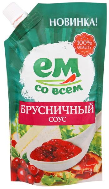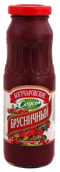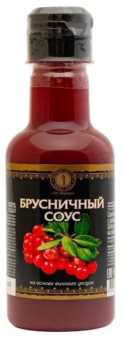 Sweet and sour product of Russian production with a characteristic lingonberry aftertaste. An excellent addition to poultry dishes at a low price. It consists mainly of natural ingredients: quick-frozen berries, concentrated lingonberry and apple juices, sugar, molasses, citric acid, natural flavor and drinking water.Ground white pepper gives the sauce a specific flavor. Not without artificial additives - a thickener for starch E1442 and preservative E202. According to the manufacturer, the sauce may contain traces of milk, soy, sesame, mustard and egg processing.