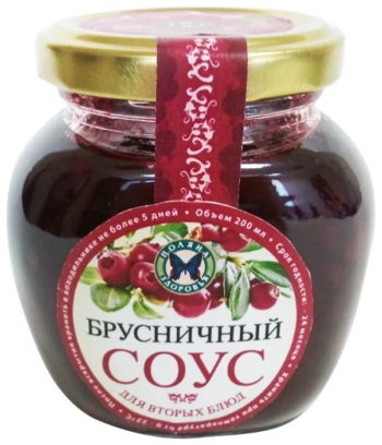 A unique product for an exquisite addition to fish dishes. Contains lingonberry puree, water, sugar and natural wine vinegar with a mass fraction of 1%. The manufacturer informs about the possible inclusion of solid particles of lingonberry and flaking of the liquid phase. Does not contain monosodium glutamate and GMOs.
