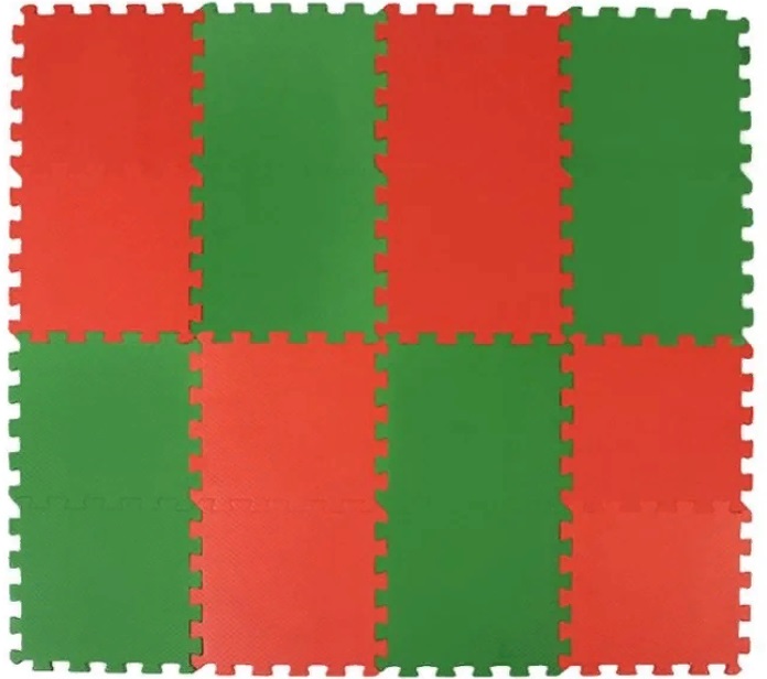 Parts of two colors are included in the set, from which you can compose a geometric pattern. The soft rug is suitable for a child's room, especially for a toddler. It will save a small child from bruises in case of unexpected falls.