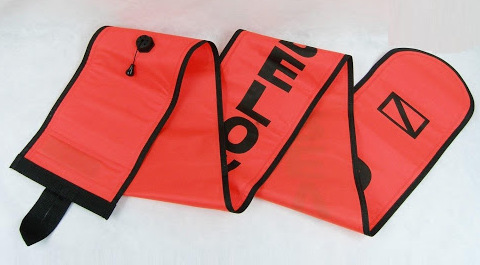When used while diving, it must be fastened to the waist belt. The bright color of the safety equipment will serve as a warning sign for floating equipment moving in the area about the presence of a person under water.
