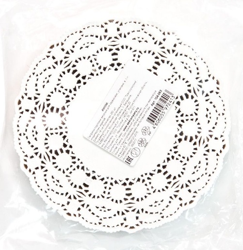 White openwork napkins in the shape of a circle, have a corrugated structure. Sealed in a transparent plastic bag. They will decorate any festive table, fit as a cup holder.