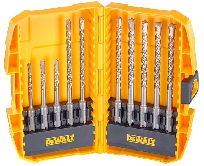 This set includes 10 rotary hammer tools with SDS-plus chuck. The barrel of the products is reinforced, made of hardened steel, which reduces the number of breakages during operation. Four grooves are provided for the removal of dust. The drills have a solid head and two cutting edges, as well as additional side cutters. This increases productivity while drilling. The cutters are made of carbide, and they are also welded to the base using a new technology that ensures a reliable connection.
