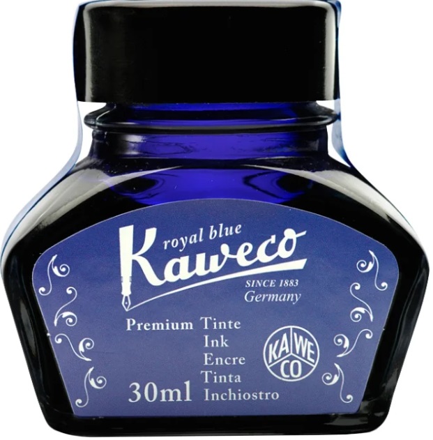 The glass bottle has a label that shows the color of the product. The volume of the Kaweco Ink Bottle is 30 ml.