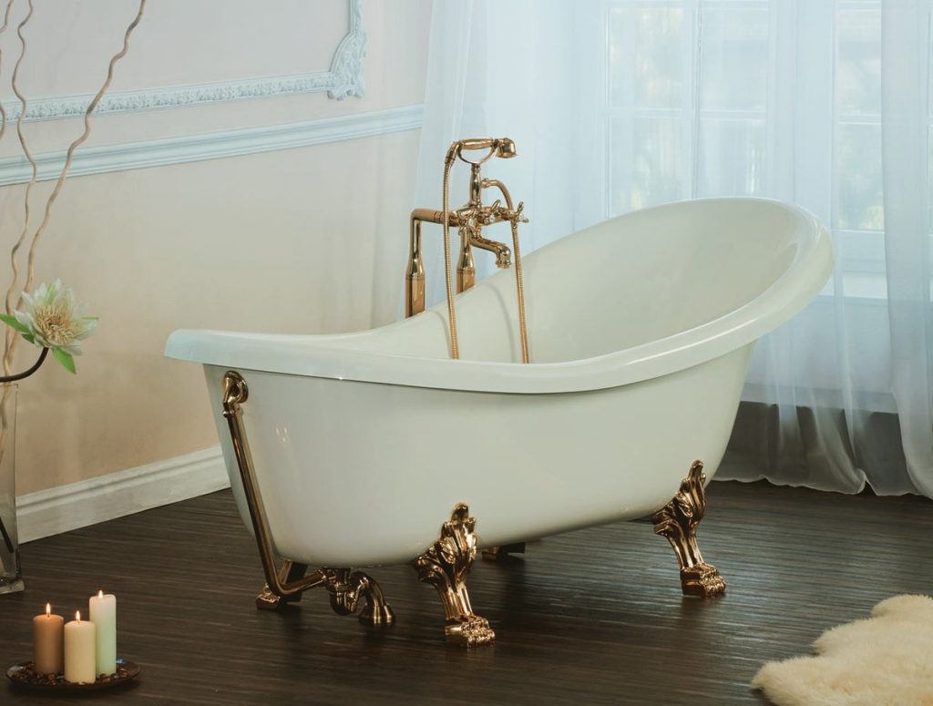 The product is equipped with good quality legs, which allows it to withstand heavy loads. Such a bathroom can be used by people of any size. The special engraving on the legs gives a special luxury. The colors of this finish are silver bronze and gold. The bathtub is designed for spacious rooms, as it is structurally conceived to stand individually.