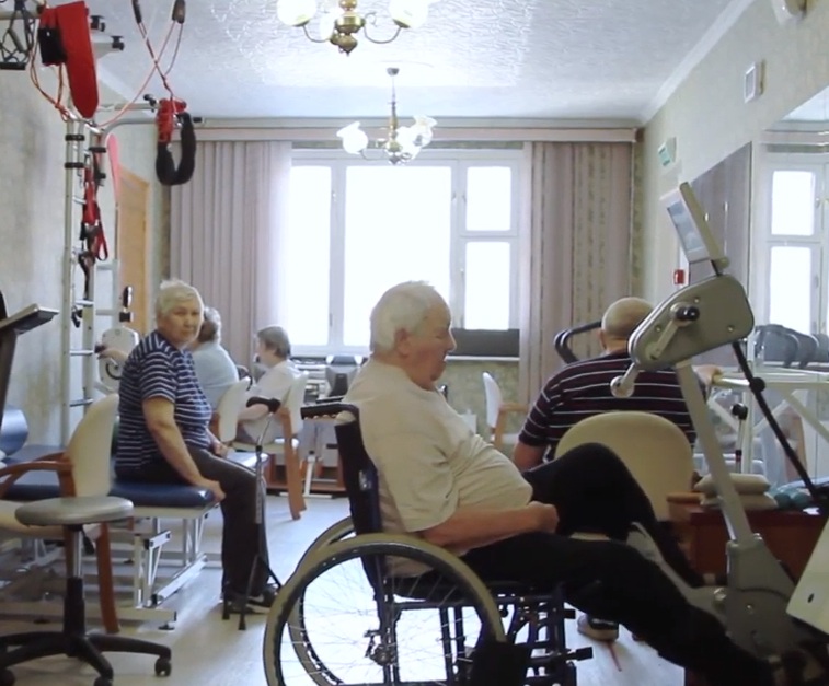 Rehabilitation of the elderly after a stroke in the "Rejuvenating apple" center, physical training room