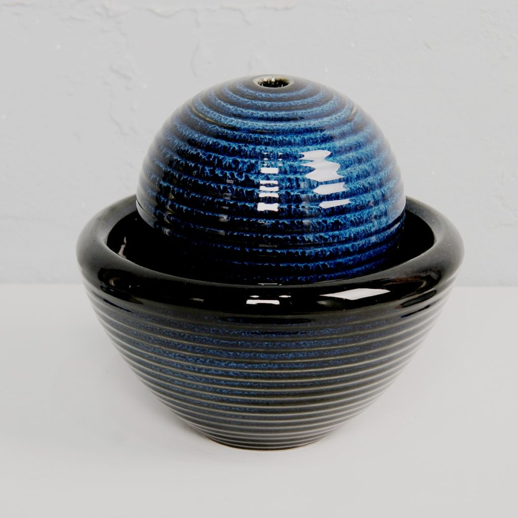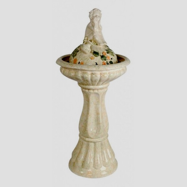 Sculpture of a boy sitting on a ball. The porcelain weighs only 19 kg. All stages of work, such as casting, assembly and painting, are done manually. Water flowing out of the jug flows down the surface of the ball, which has a pump for circulating the liquid. Adjustment of the jet pressure is provided.