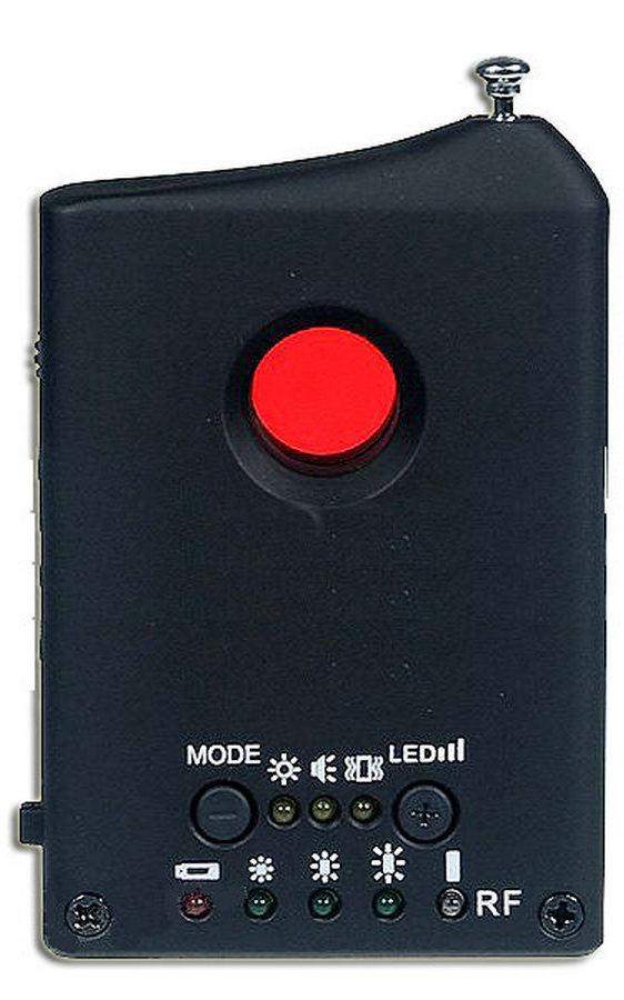 The gadget combines two detection systems at once: it scans radio wave frequencies and detects lens flares. The ability to alert the detected covert surveillance using sound signals (there is a headphone input) It is also possible to recognize tracking devices operating in GSM mode