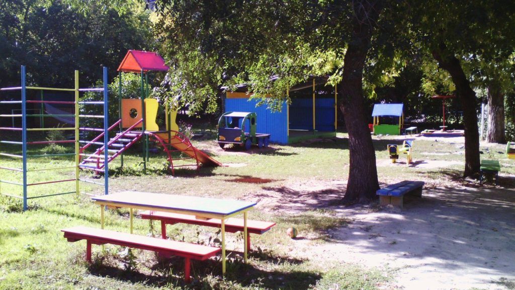 Territory. The kindergarten is completely fenced, located away from busy roads, close to the gardens. Equipped with a convenient entrance, private parking for 50 places and equipped with video surveillance cameras. There are also 6 walking grounds on the territory, equipped according to the age of the children: