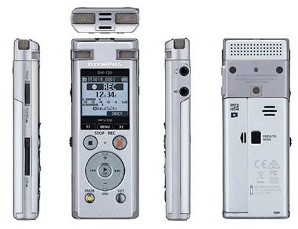With great potential, Olympus DM-720 has simple control, thanks to the fact that the manufacturer has thought out the interface to the smallest detail: equipped the device with a Russified electronic menu, a voice activation option and the ability to lock control. Its functionality also includes an answering machine (recording a telephone conversation), built-in clock, calendar, alarm clock and Sleep-time, voice notifications, search by tags, recording speed settings and using the device as a flash drive.