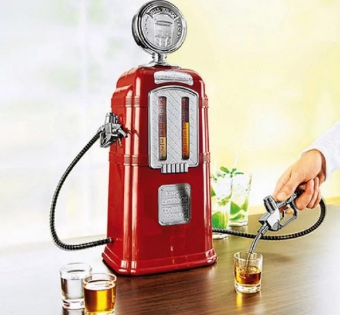 The single dispenser in the form of a gas station looks extremely cool. You can give it to a friend or colleague. Such an unusual gift will only delight. At various parties, it will become an indispensable item.