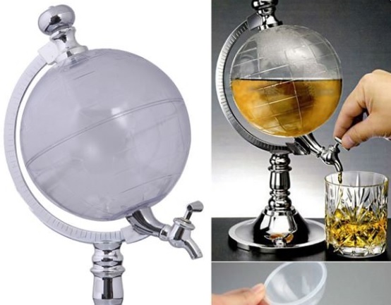 The dispenser in the shape of a globe looks unusual and funny. Such a thing can be presented to a person who has unlimited imagination and a sense of humor. The plastic case is shaped like a geographic globe. The capacity contains 3.5 liters of beverage and is equipped with a dispensing tap. A funnel is included to make the liquid easy to pour.