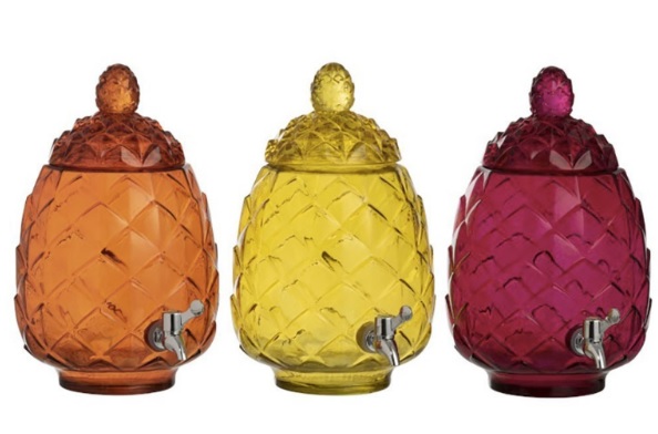 An unusual dispensary that looks like a golden pineapple can become a decoration of a feast. Guests will definitely like soft drinks, juices and cocktails served in such a container.