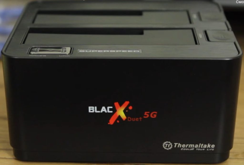 A Chinese docking station allows you to use one port to which multiple hard drives can be connected. This type of device supports 2.5 "and standard 3.5" hard drives. In addition, there are two data interfaces to choose from: eSATA and USB 2.0. The average cost is 5,870 rubles. On the upper wall of the device there are two slots used for installation. There is also a button for removing the hard drive. There are hard drive activity indicators on the front. Thermaltake BlacX Duet is not a large size technique. Its width is 14 cm, height - 7 cm and length - 12 cm. Weight reaches 334 grams. At the back are data ports such as: