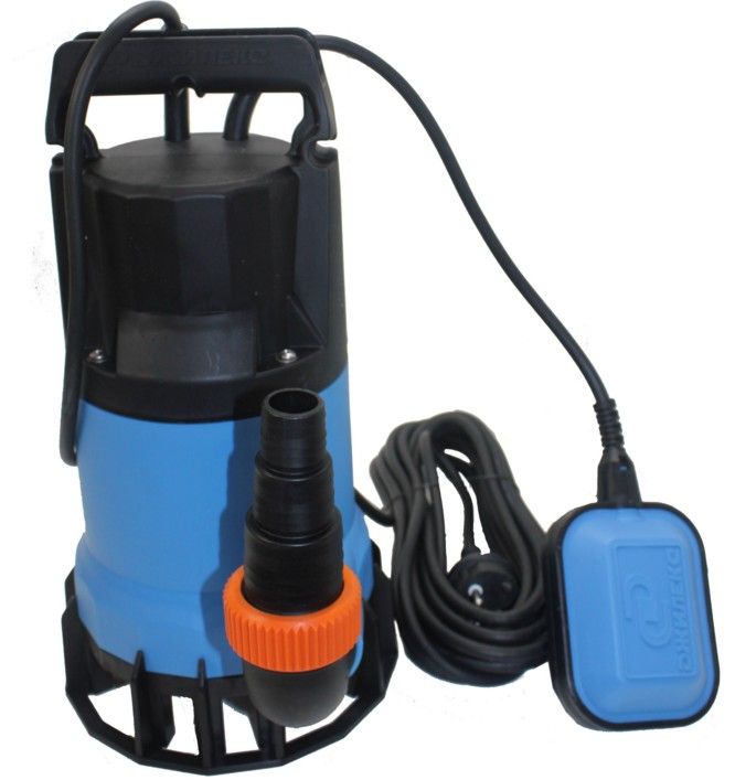 The most powerful pump in question. Used to pump out dirty water. Can be used to irrigate the site. Requires proper installation, in which it is suspended without touching the bottom of the tank (reservoir) to prevent the suction of sludge and debris from the bottom. The pump is equipped with a dry-running automatic system in the form of a float switch. Maximum height of water rise - 10 meters, productivity - 13.98 m3/ h