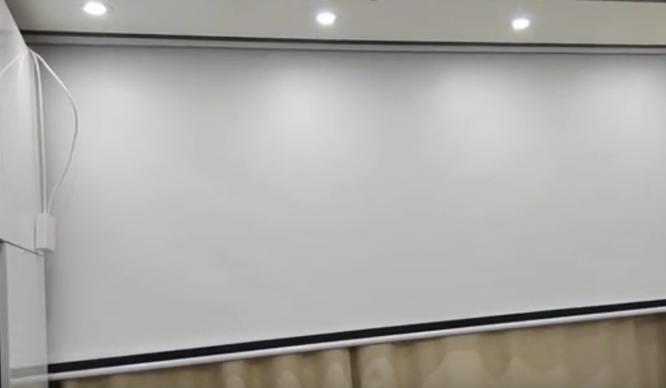 Electrically driven wall-mounted screen with 4: 3 aspect ratio.