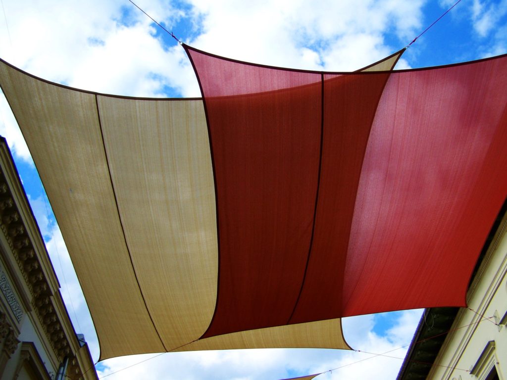 Canvases made of vinyl with a special coating. The perimeter is framed by an eyelet up to 5 centimeters, and there are also plastic eyelets with a pitch of 25 cm.