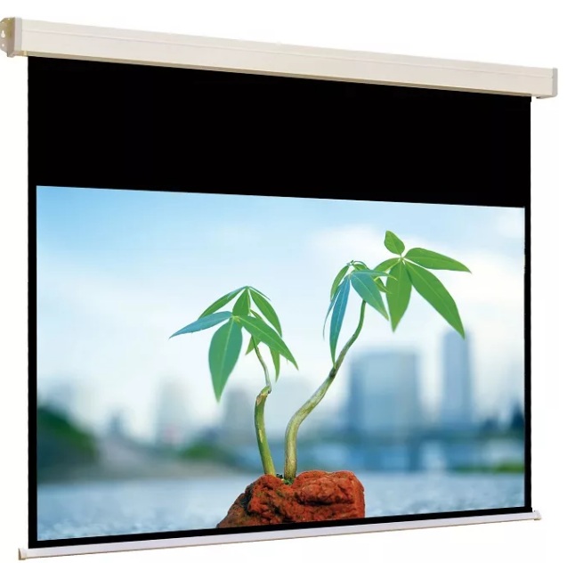 Electrically driven wall-mounted screen with 4: 3 aspect ratio.