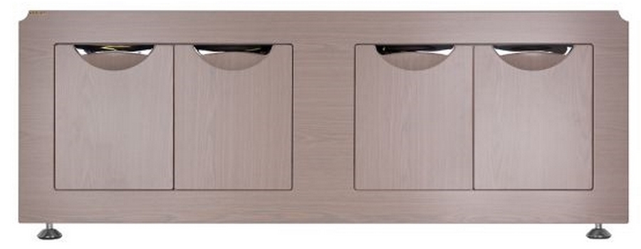 This model is suitable for almost any bathroom: both where the communications are installed under the bowl, and where they are brought out. The shielding element is equipped with screw support legs, all fittings (handles, plugs) are made of a rigid plastic profile. Free air circulation effectively extinguishes the formation of mold and mildew.