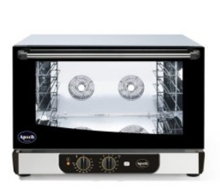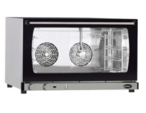 A convection unit from an Italian manufacturer on a mechanical control bakes and warms up, possibly for using frozen products with an initial exposure in proofing cabinets.