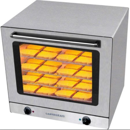 The principle of convection ovens is the implementation of thermal heating inside the chamber by a jet, equally flowing method using steam for heat treatment of a food product.