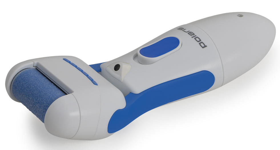 Excellent efficiency for an optimal price was noted by many consumers who tested electric files of this manufacturer. In their opinion, an excellent result is noted after the first procedure. The devices cope with the most old and hardened skin growths. The peculiarity of these tools is that they can move the rollers in two directions. To move from one position to another, a switch is provided on the body. Working only on batteries, it is possible to use them in places where there is no stationary power source.