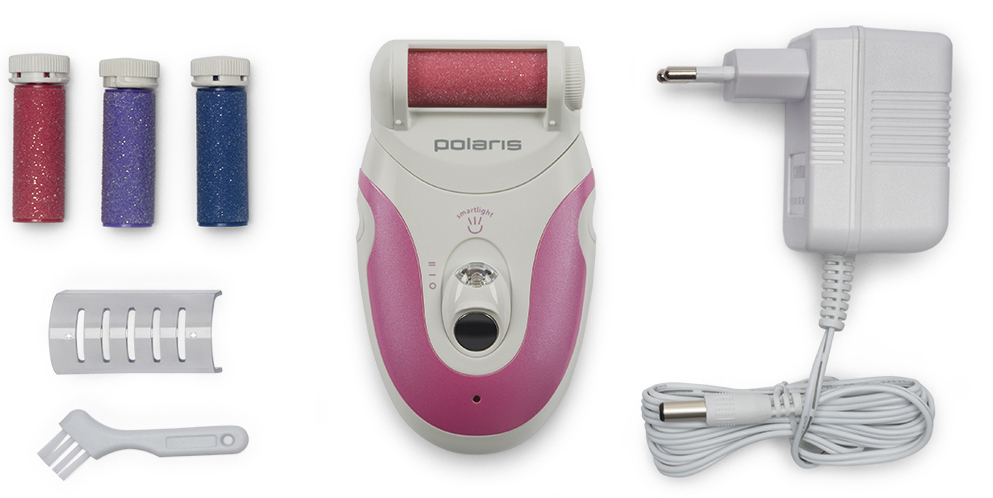 This type of product is characterized as an effective tool for soft and easy cleansing of rough areas and growths of feet. Equipped with two attachments of different degrees of abrasiveness, it can be used for rough and sensitive skin of the legs. The procedure involves dry cleaning, without pre-soaking. The backlit case makes the process much easier and improves its quality.