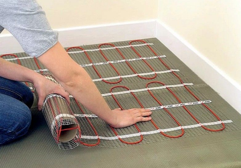 The installation of this floor is accompanied by less work. This is due to the fact that there is no need to fill the screed. Depending on the power, it can be installed either in a thick adhesive layer or under the final floor covering. In both cases, the rise in floor height will be minimal. It is most convenient to lay heating mats in rectangular rooms.