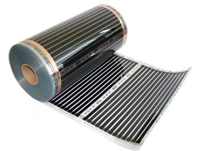 The film warm floor has a structure that is different from the previous types. It is represented by a thin heat-resistant film. The role of heating elements is played by carbon nanostructure plates. They are interconnected by copper buses, which are connected to the thermostat using a copper wire, and it is already connected to a 220 V electrical network.