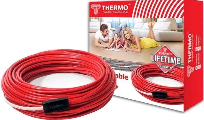 Underfloor heating, which is a single-core shielded heating cable. It has an oval section of 7x4 mm. This underfloor heating model can be used for both additional heating and main heating. In the second case, to obtain full heat, the heating area should not exceed 1.9 m2... It is recommended to use it for heating walk-through rooms, balconies, hallways. Manufacturer's warranty - 17 years. Made in Russia.