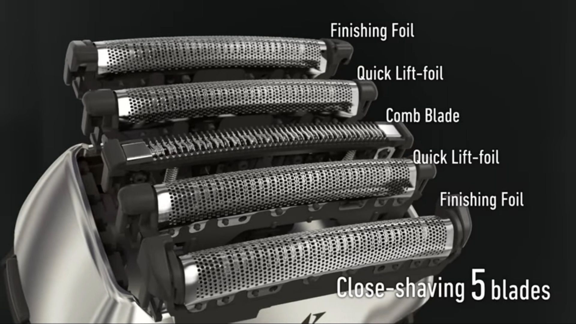 The shaver is equipped with MultiPrecision blades, which feature rounded heads and the ability to lift the bristles for cutting.